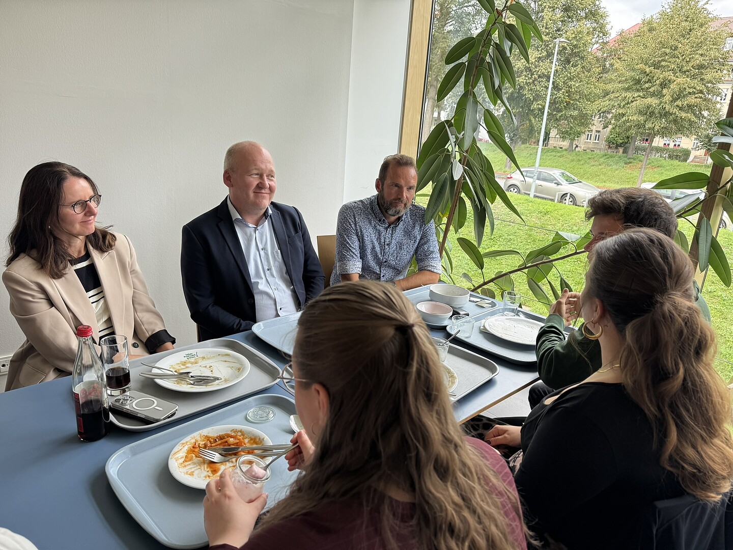 Nach der Begrüßung und dem Eintrag ins neue Goldene Buch der HSZG stellte das Rektorat zentrale Entwicklungslinien der HSZG vor. Gemeinsam mit der Hochschulleitung besichtigte die Staatssekretärin das Naturfaserforschungszentrum LaNDER³ und das Zittauer Kraftwerkslabor, zwei beispielhafte Einrichtungen für die anwendungsorientierte Forschung in der Oberlausitz. Beim Mittagessen in der Mensa nutzten Studierende aus dem Studierendenrat die Gelegenheit, ihre Perspektiven einzubringen und Fragen rund um das Studium an der HSZG mit der Staatssekretärin zu diskutieren.