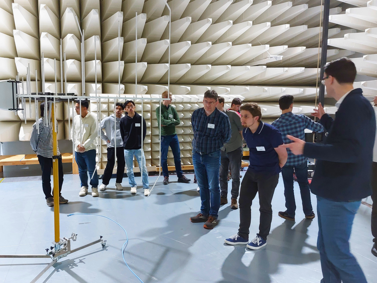 Ein besonderes Highlight der Exkursion war die Besichtigung der Absorberkammer mit einer 10-Meter-Messstrecke. Die beeindruckende Anlage verdeutlichte eindrucksvoll die komplexen Anforderungen moderner Mess- und Prüftechnik und stieß bei den Teilnehmenden auf großes Interesse