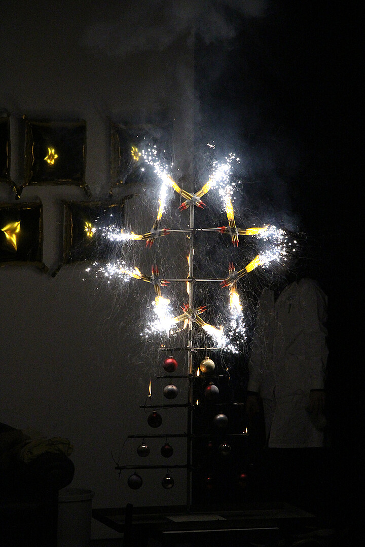 Mit seinem Geisteraktivitätszähler ging ein Geisterjäger auf Spuk-Spurensuche und löschte alle fragwürdigen, extraterrestrischen Aktivitäten aus, die der Außerirdische Nano vom Planeten X bei seinem Besuch hinterlassen hatte. Geisterhände lösten sich auf magische Weise auf und ein neonfarbiges Lichtspektakel sorgte für staunende Kindergesichter. Mit 150 Kindern war die Kinder-Chemieschauvorlesung so gut besucht wie noch nie.
