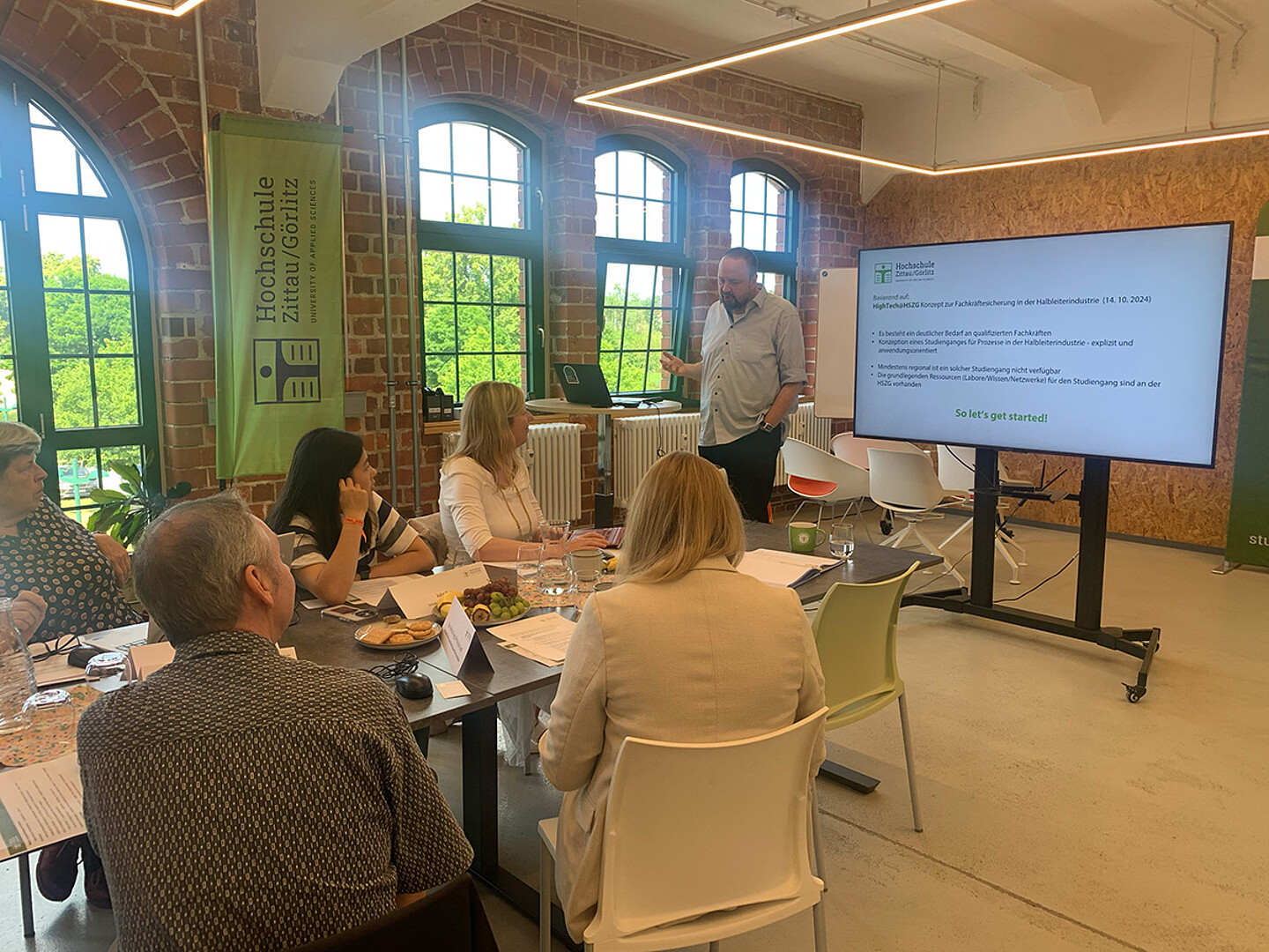 Der Workshop knüpfte an die International Business Conference vom 9. April 2025 an, die sich mit den Möglichkeiten zur Steigerung der Standortattraktivität der Oberlausitz für die Halbleiterindustrie, regionalen Zulieferpotenzialen und der Fachkräftesicherung beschäftigte. (Hier geht es zum International Business Conference-Video.)  Der aktuelle Workshop fokussierte gezielt auf das Thema Fachkräftesicherung – insbesondere auf die Weiterentwicklung dualer Studienformate und die Gestaltung neuer Studiengänge im Halbleiterbereich.