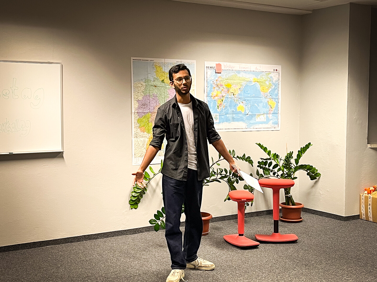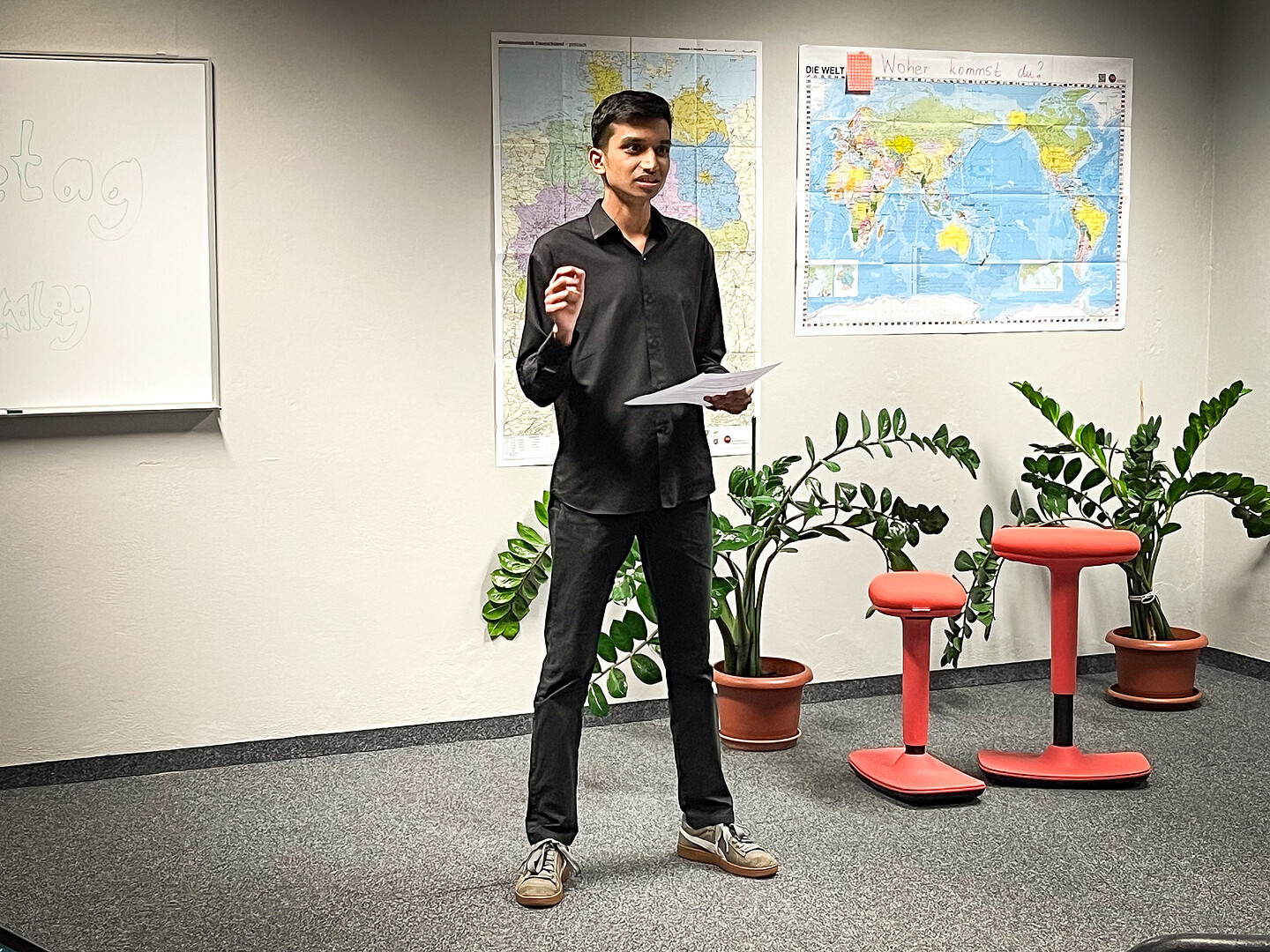 Der Vorlesetag am Studienkolleg bot den Kollegiaten und Kollegiatinnen die Möglichkeit, nicht nur ihre Auftritte auf Deutsch zu üben und Lampenfieber zu überwinden, sondern auch ihre Kreativität und sprachlichen Fähigkeiten unter Beweis zu stellen. Sie konnten lernen, vor Publikum sicher zu sprechen, sich lebendig zu präsentieren und ihre Körpersprache gezielt einzusetzen. All dies wird ihnen sicherlich beim weiteren Studium in Deutschland helfen. Die Veranstaltung zeigte eindrucksvoll, wie solche Aktivitäten Menschen aus aller Welt verbinden und das Gemeinschaftsgefühl am Studienkolleg stärken.