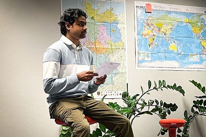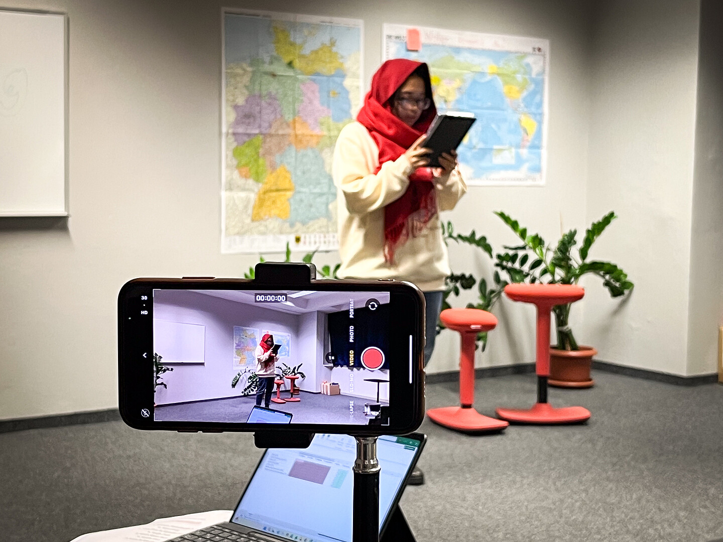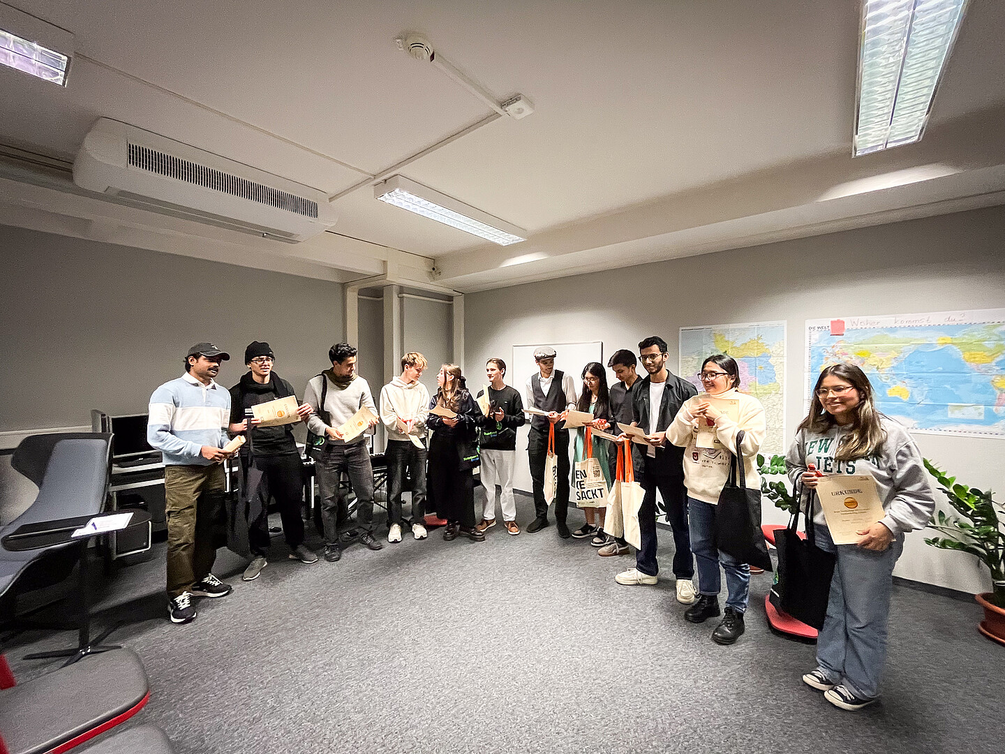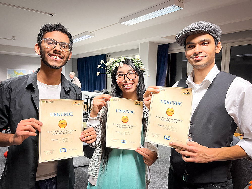Der Vorlesetag am Studienkolleg wurde in Form eines Wettbewerbs durchgeführt. Unsere Studienkollegiaten und Studienkollegiatinnen präsentierten ihre Beiträge entweder in Gruppen oder einzeln. Die Teilnehmenden stammen aus verschiedenen Ländern, unter anderem aus Indonesien, Pakistan, der Ukraine und Indien. Mit dem emotionalen Vortragen von Geschichten und eigenen Texten, dem Singen von Weihnachtsliedern sowie der kreativen Präsentation von Legenden sorgten sie für ein abwechslungsreiches Programm.