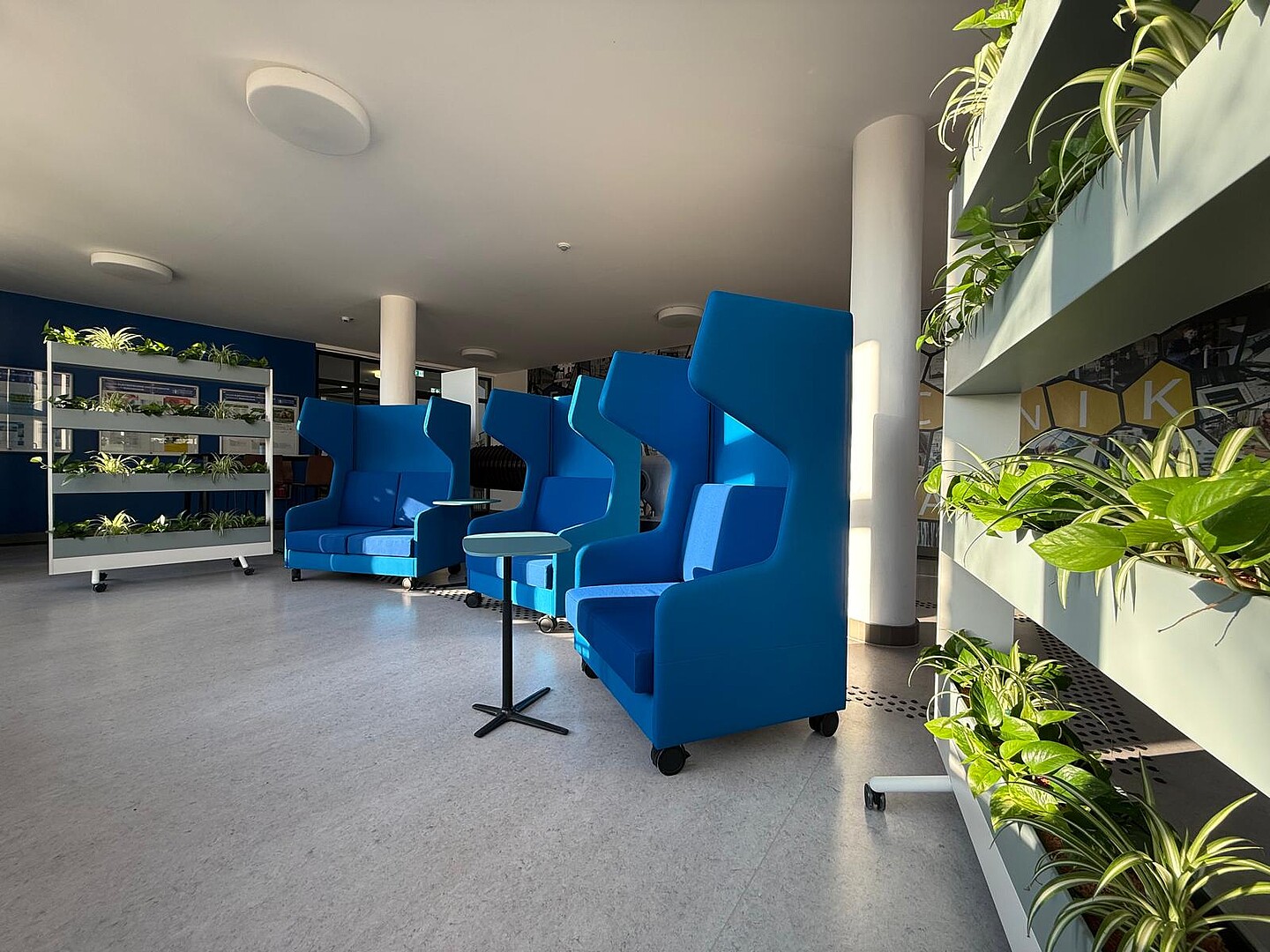 Darüber hinaus wurden ausgewählte Freiflächen an den Campusstandorten in Zittau und Görlitz aufgewertet und mit innovativen, mobil einsetzbaren und flexibel umbaubaren Möbeln ausgestattet. Die Umgestaltung erfolgte in enger Zusammenarbeit mit den Fakultäten. Ziel ist es, die Verweildauer auf dem Campus zu erhöhen und neue offene Lernbereiche zu schaffen, die zum Austausch und gemeinsamen Arbeiten einladen.