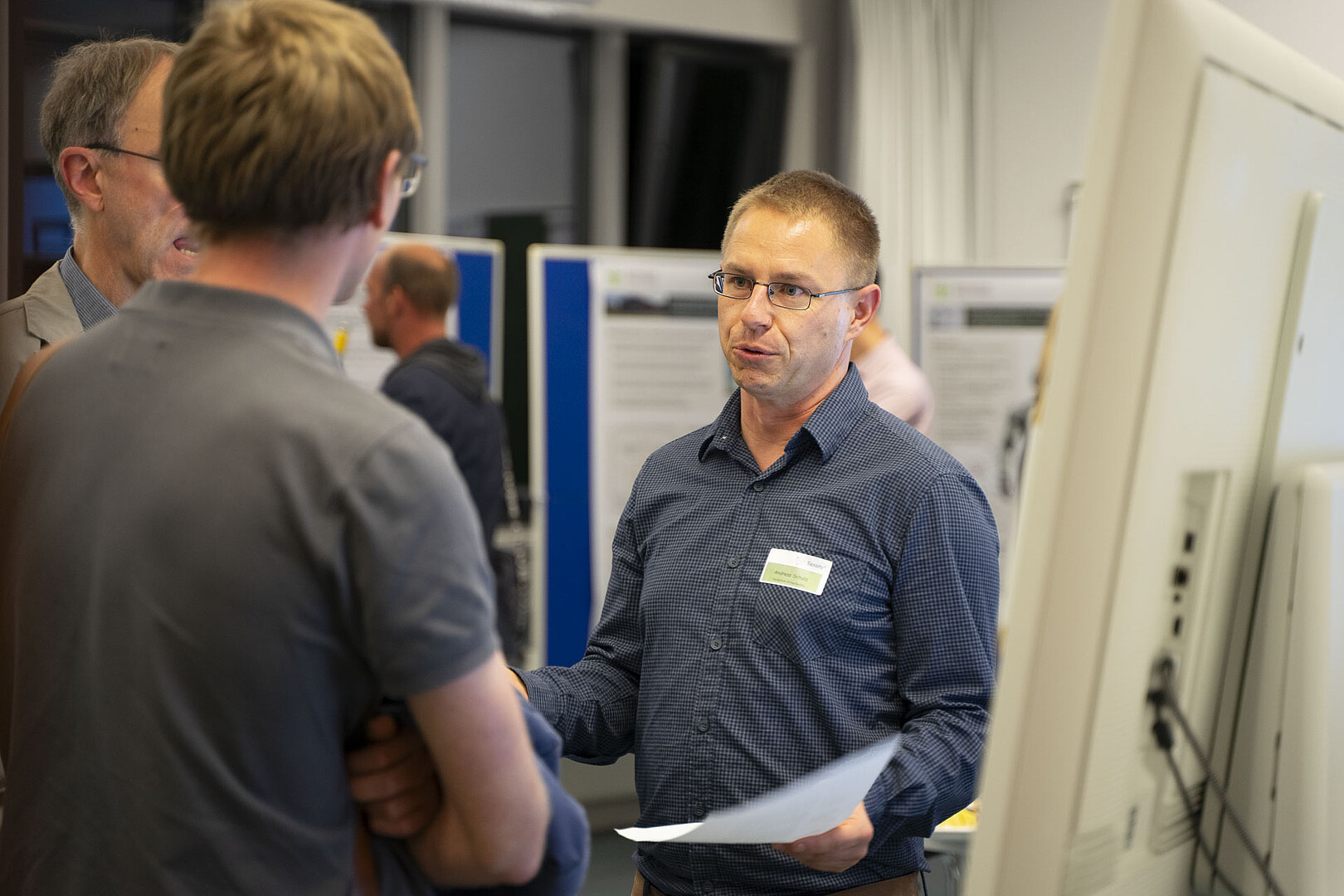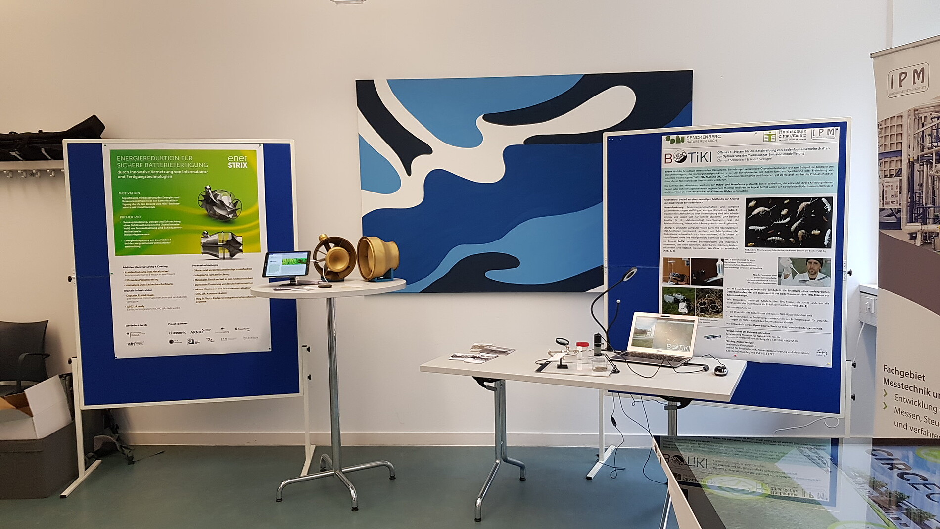 Ergänzend zum Programm lud die HSZG zu einer begleitenden Leistungs- und Posterschau ein. Diese umfasste zum einen Exponate aus laufenden Forschungsprojekten aller Forschungsinstitute der HSZG (IPM, TRAWOS, ZIRKON, GAT) sowie der Fakultäten Natur- und Umweltwissenschaften, Elektrotechnik und Informatik und Wirtschaftswissenschaften und Wirtschaftsingenieurwesen. Zum anderen gab es in der Aula eine Posterschau mit Projekten, die über sächsische Landtagsmittel gefördert wurden und werden. Damit wurde sowohl die große Bandbreite der Forschung an der HSZG sichtbar, wie auch herausragende Großprojekte.