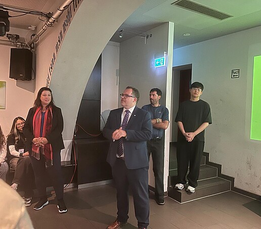 Auch wenn sie nicht persönlich vor Ort sein konnte, ließ es sich die Prorektorin für Forschung, Transfer und Internationales, Professorin Sophia Keil, nicht nehmen, den Gästen aus Leipzig ihre Wertschätzung aus der Ferne zu übermitteln. Von einer Dienstreise in Schweden schickte sie eine persönliche Videobotschaft: „Es ist mir eine Freude, Sie herzlich an unserer Hochschule willkommen zu heißen. Ihr Besuch ist für uns eine wunderbare Gelegenheit, die internationale Zusammenarbeit zu stärken und gemeinsam neue Wege des Lernens und Forschens zu entdecken. Ich bin überzeugt, dass solche Begegnungen die Brücken zwischen Ländern und Kulturen stärken und auch uns als Hochschule wichtige Impulse für unsere Weiterentwicklung geben.“