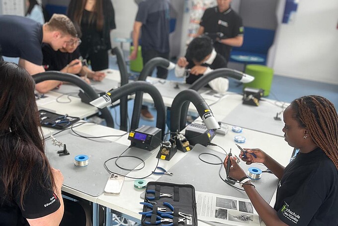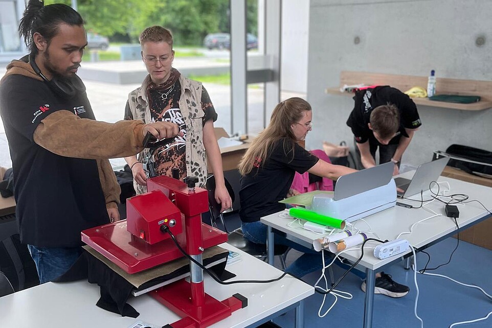 Die Teilnehmenden konnten bei verschiedenen Workshops selbst aktiv werden. Sie bedruckten T-Shirts mit Hochschulmotiven, löteten Schmuck, arbeiteten im AirLab mit 3D-Druckern und Lasercuttern – so konnten alle Studieninteressierten kreativ sein und erste Kontakte zur Hochschule knüpfen.