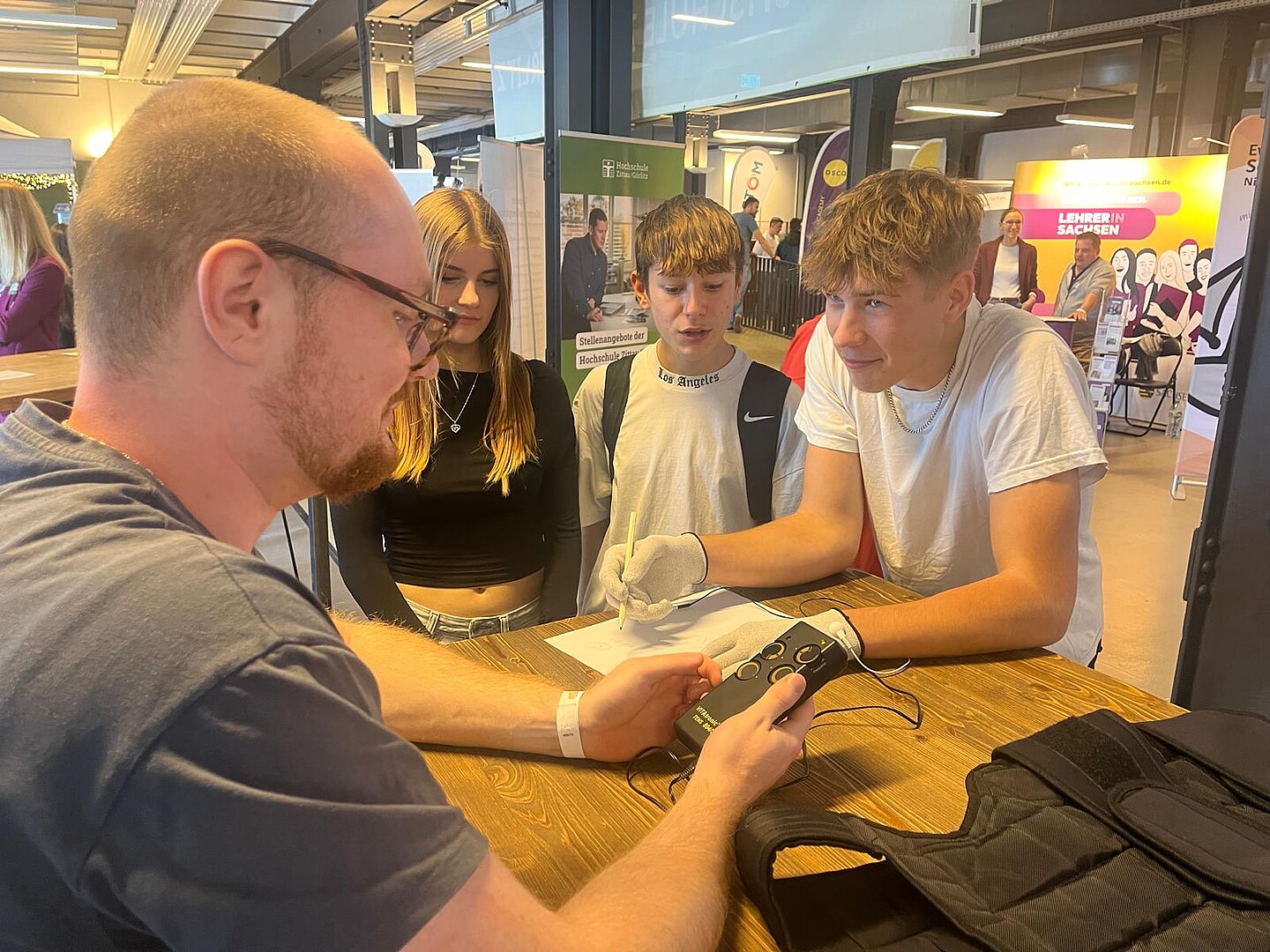 Wie schon in den Vorjahren war auch die Hochschule Zittau/Görlitz (HSZG) mit einem großen Informationsstand vertreten – diesmal gemeinsam mit dem GAT-Institut und dem Pflegestudiengang. Damit konnte die Hochschule gleich mehrere Facetten ihrer Studienangebote sichtbar machen: Von den Sozialwissenschaften bis zur Pflege, von Forschungseinblicken bis zu praktischen Demonstrationen.