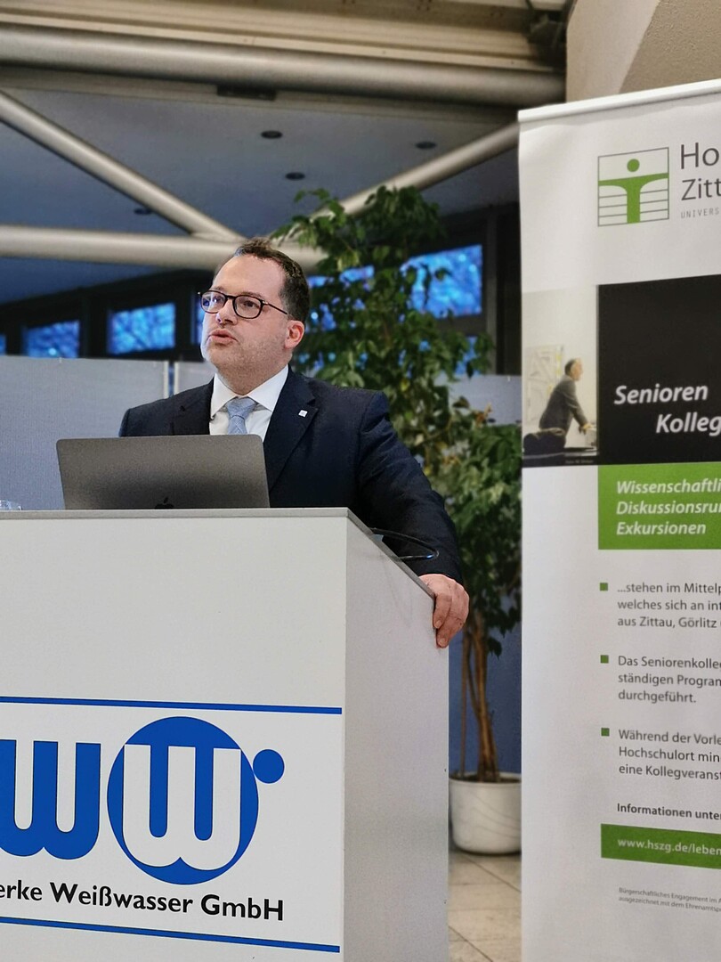 In diesen Jahr gab es eine Fortsetzung zum Thema "Wärmeversorgung". Den ersten Beitrag gab es im Jahr 2024, als Professor Dr.-Ing. Alexander Kratzsch über das Forschungsprojekt "AQVA-Heat" sprach, an welchem die HSZG und die Stadtwerke Weißwasser beteiligt sind. In diesem Jahr folgte der Vortrag "Herausforderungen einer ökologischen, ökonomischen und sozialverträglichen Wärmeversorgung" von Prof. Dr.-Ing. Matthias Kunick.