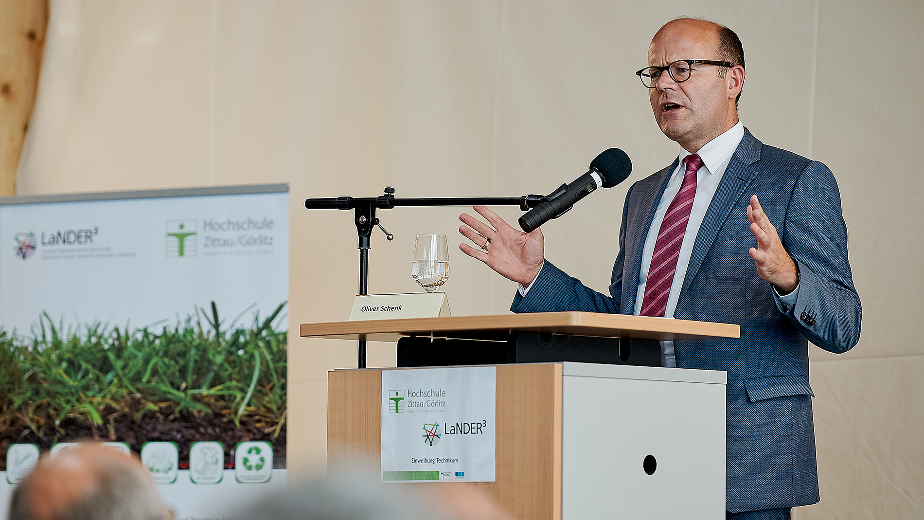 Am 28. August 2019 wurde an der Hochschule Zittau/Görlitz (HSZG) im Beisein des Chefs der Sächsischen Staatskanzlei, Herrn Staatsminister Oliver Schenk, dem Mitglied des Sächsischen Landtages Herrn Dr. Stephan Meyer, Herrn Prof. Welf-Guntram Drossel, Institutsleiter Fraunhofer-Institut für Werkzeugmaschinen und Umformtechnik IWU, Herrn Prof. Miroslav Brzezina, Rektor der TU Liberec und grenzübergreifender Partner der HSZG, Herrn Thomas Zenker, Oberbürgermeister der Stadt Zittau, Herrn Alexander Jakschik, Geschäftsführer ULT AG, Partnerunternehmen und Beiratsmitglied LaNDER³, die LaNDER3-Halle als neues interdisziplinäres Forschungstechnikum eröffnet. Zu dieser Veranstaltung konnten zahlreiche in- und ausländische Gäste aus Wirtschaft, Wissenschaft und Gesellschaft sowie Akteure der Impulspartnerschaft begrüßt werden.