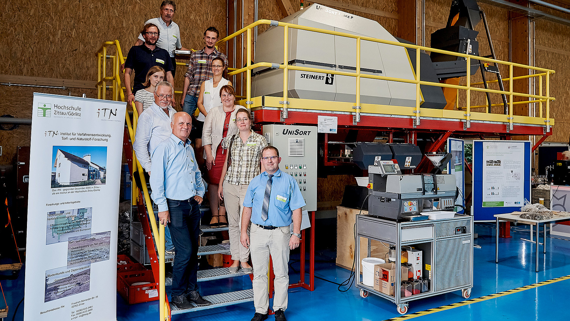 Das hohe Interesse regionaler Unternehmen an einer Zusammenarbeit mit der Hochschule Zittau/Görlitz im Bereich der naturfaserverstärkten Kunststoffe ist groß. Das zeigt nicht nur die große finanzielle Unterstützung vieler Unternehmen, sondern auch die Bereitstellung von Anlagen- und Maschinentechnik zum Gelingen der Projektziele in LaNDER³. Auch diese Maschinen werden im neuen LaNDER3-Technikum ihre Heimat finden. Eine davon ist beispielsweise eine Sortiermaschine der RTT Steinert GmbH aus Zittau zur Erforschung von Recyclingprozessen für NFK-Bauteile.
